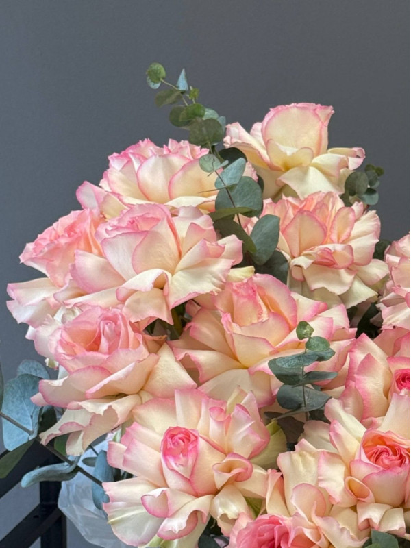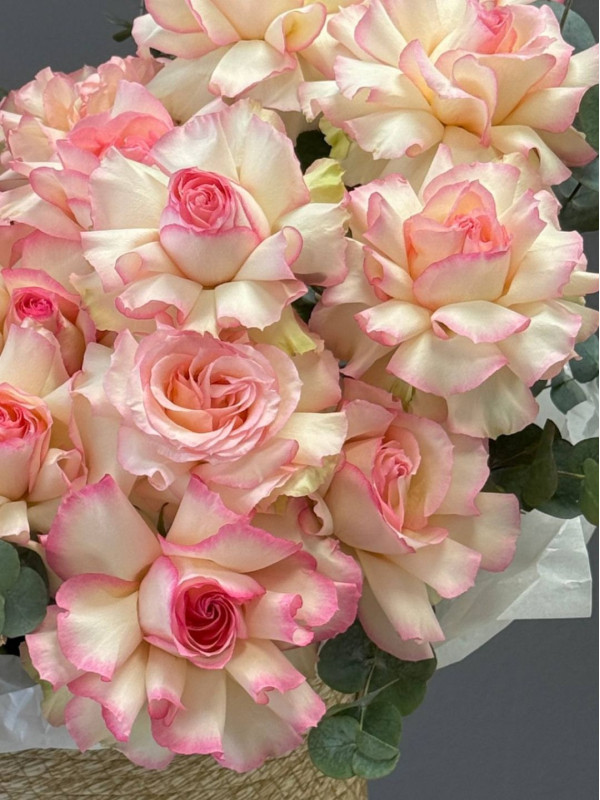 Соответствие образцу: на фото представлен пример букета. А каждый букет индивидуален и повторить его в точности практически невозможно. Так как цветы-это живой материал, они могут приходить к нам в разной степени раскрытия и пышности, формы и даже оттенка. Просим отнестись к этому с пониманием.