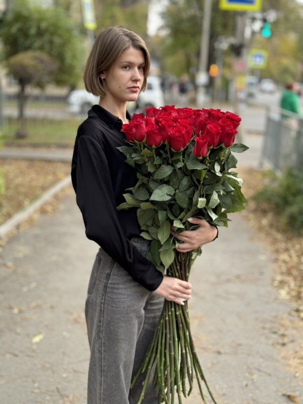 Букет из 25 метровых эквадорских роз сорта Эксплорер.