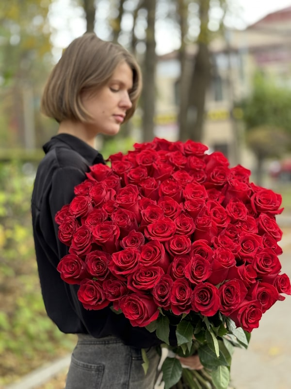 Соответствие образцу: на фото представлен пример букета. А каждый букет индивидуален и повторить его в точности практически невозможно. Так как цветы-это живой материал, они могут приходить к нам в разной степени раскрытия и пышности, формы и даже оттенка. Просим отнестись к этому с пониманием.