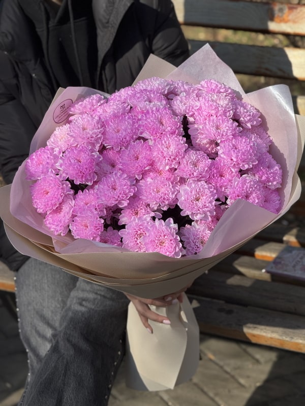 Букет из 11 кустовых хризантем в упаковке. Возможна замена цвета, либо микс.
