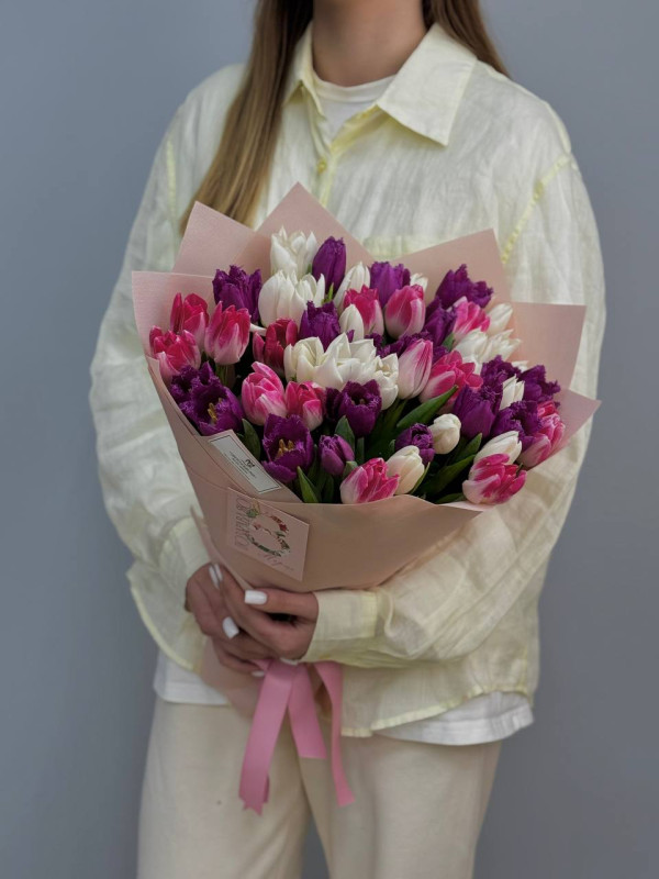 51 классический тюльпан в красивой упаковке. Цвета на выбор из наличия, нежные или яркие.