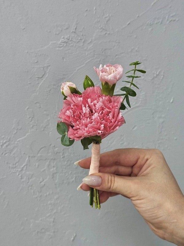 Бутоньерка в стиле букета прилагается в подарок. С любовью и заботой, упакуем Ваш свадебный букет в специальный бокс с водой, для безопасной транспортировки букета в течении всего мероприятия.