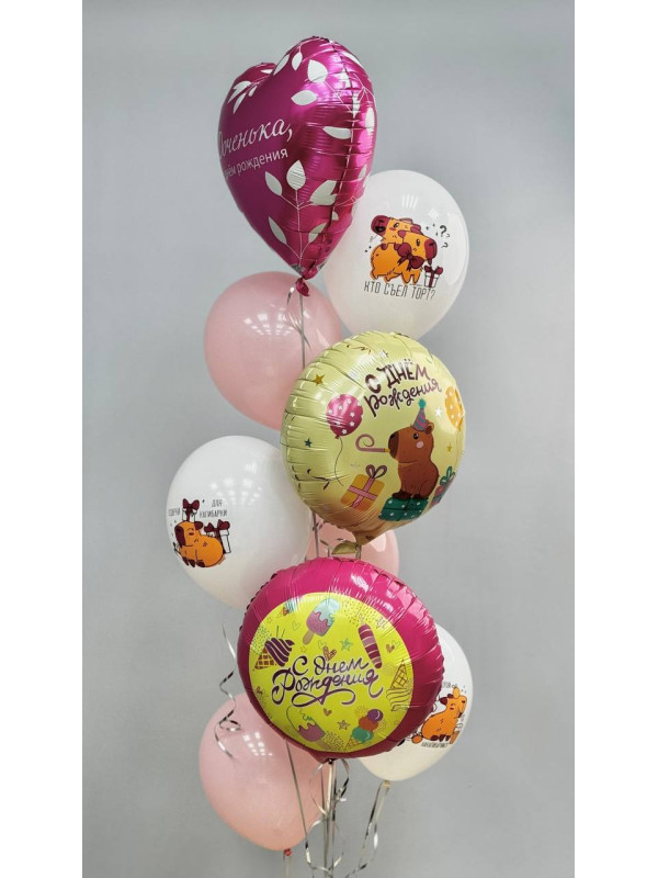 Также мы оставляем за собой право на замены похожими по смыслу и цвету шаров при отсутствии вариантов из примера. При этом мы всегда сохраняем цветовую гамму и настроение подарка.